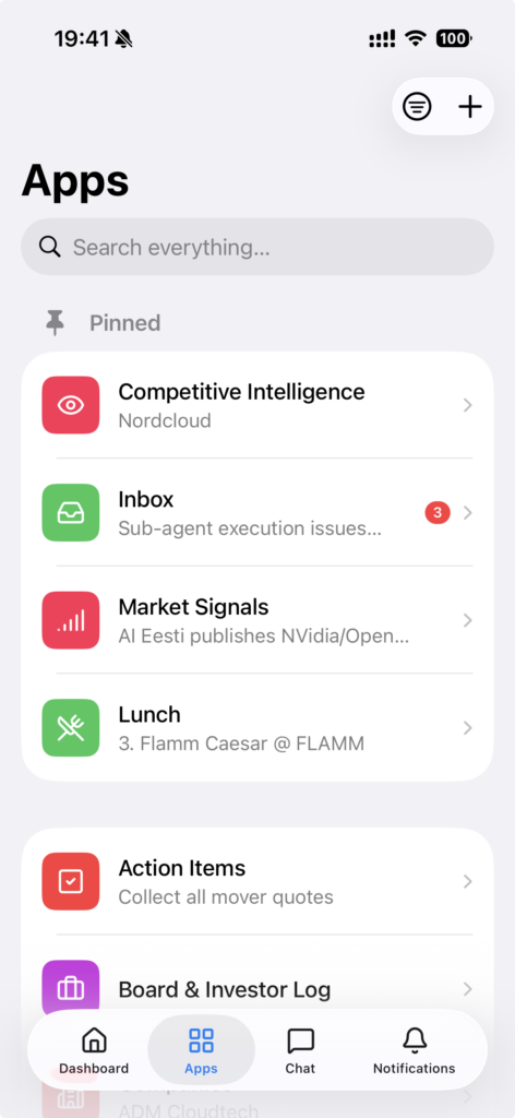 We’re constantly expanding the framework. There are many more micro apps running now, monitoring internal and external factors, notifying me whenever something needs attention. Each one built in minutes, running autonomously.